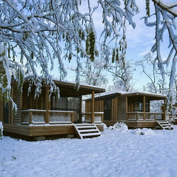 On vous accueille au chaud, dans nos chalets bois familiaux tout équipés !